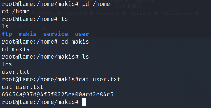 /home/makis 경로에서 user.txt를 찾아내는 데에 성공했다.