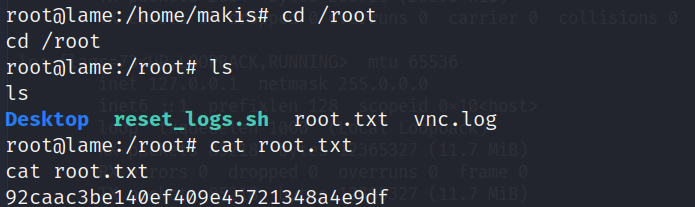 Lame의 목표는 Root 권한을 획득하는 것이며, 또한 이 권한을 이용해 플래그를 획득하는 것이 목표이다.