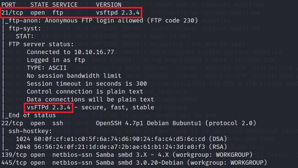 리눅스 기반의 환경이며 21번 포트(ftp), 22번 포트(ssh), 139번 포트(samba), 445포트(samba)가 열려있다.