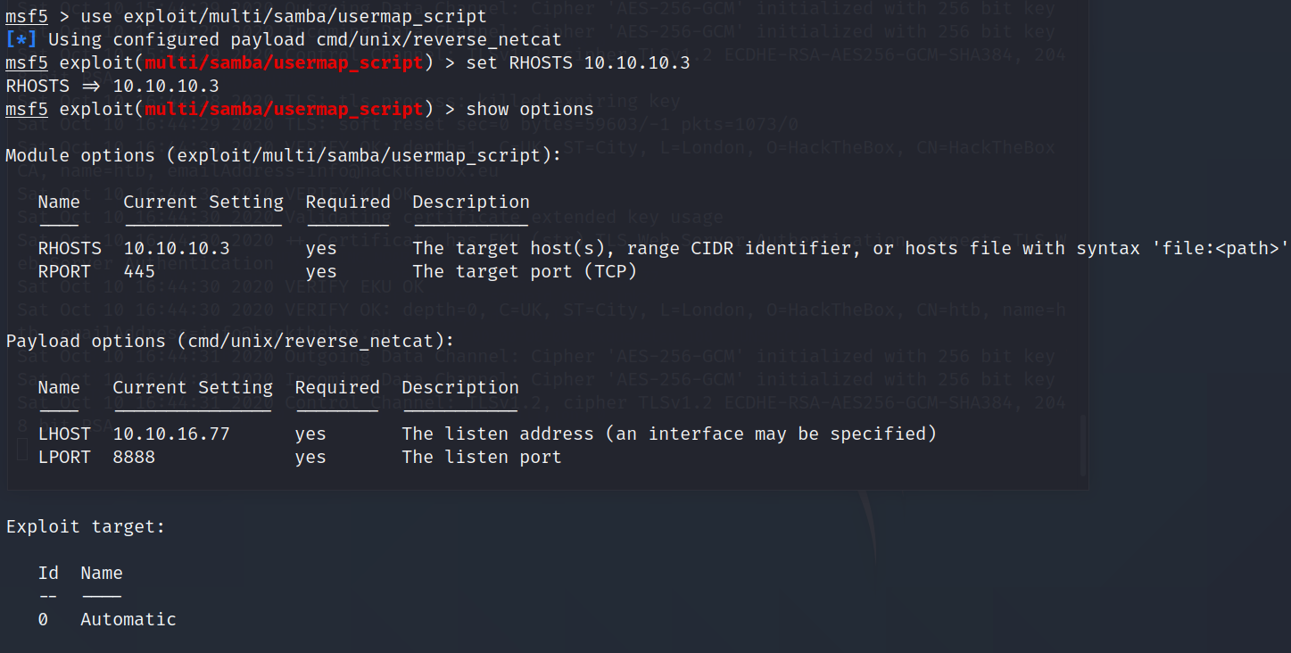 공격을 실행하려면 이 원격 호스트 설정이 필요하므로 우리의 타겟인 10.10.10.3 Lame의 IP를 입력해준다.