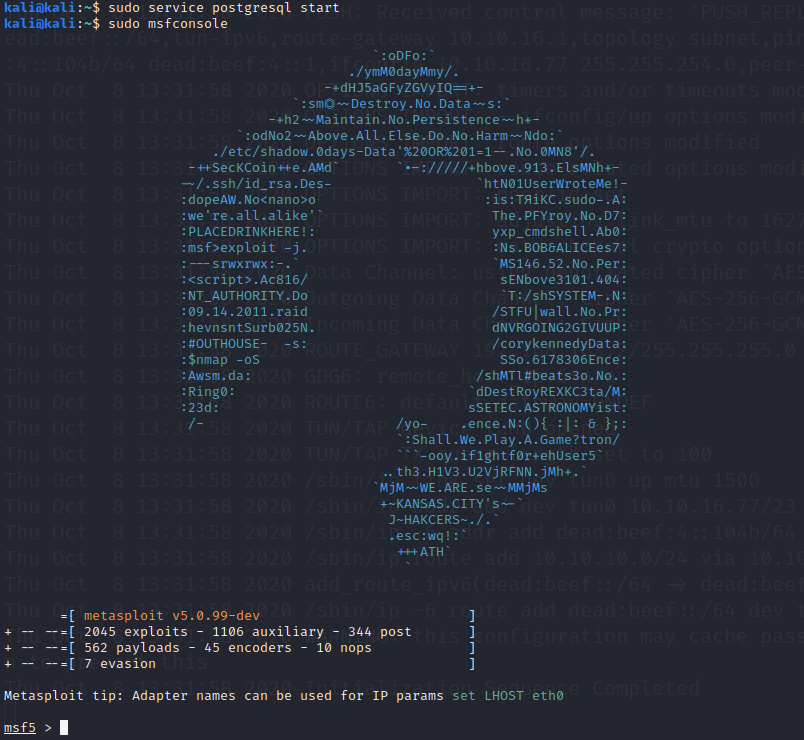 Metasploit는 Kali Linux 환경에 기본적으로 구성되어 있으므로 해당 침투환경에서 바로 실행하여 진행하겠다.