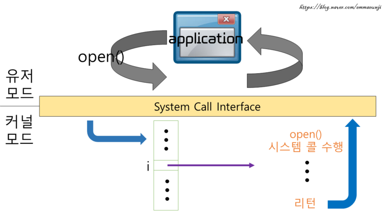 - 시스템 호출이 모두 처리 되면다시 커널 모드에서 유저 모드로 돌아온다