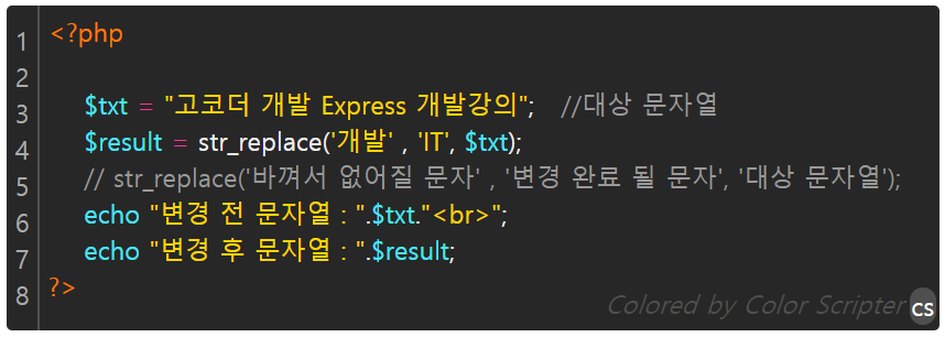 | PHP) str_replace() 함수 : 문자열 치환 함수 (0) | 2020.11.05 |