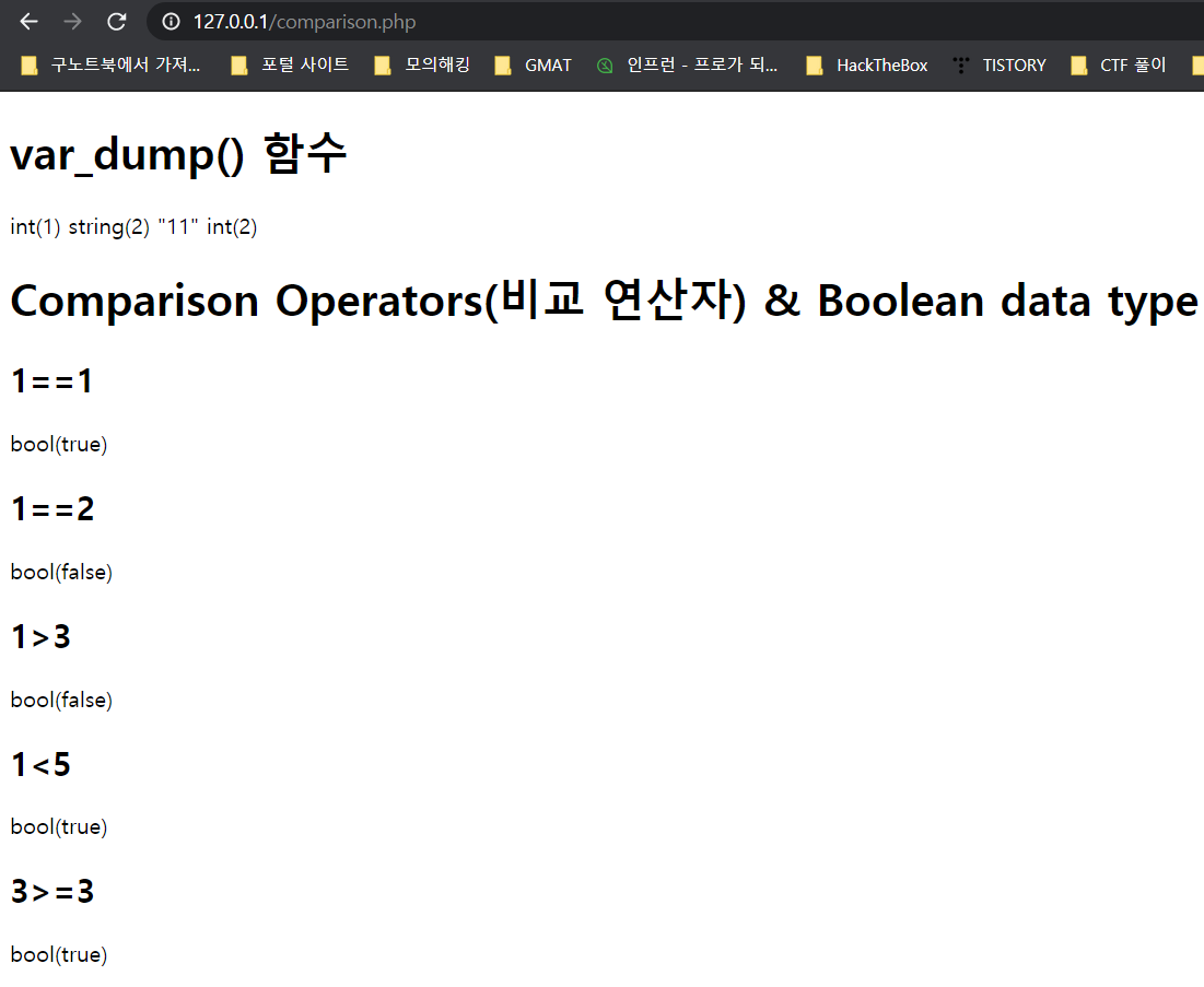 var_dump() 함수, 비교 연산자의 사용, Boolean 데이터타입 (0) | 2020.10.22 |