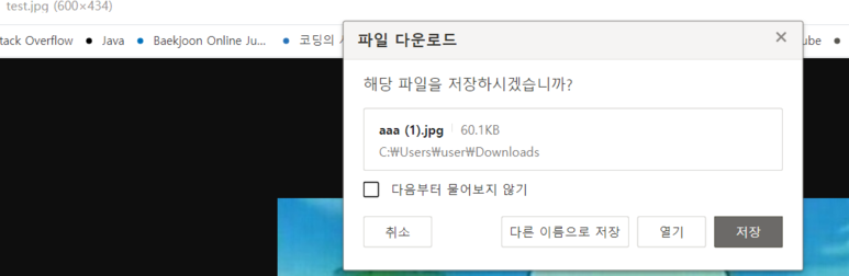 파일 다운로드 기능에서는 파일 타입(형식)을 일일이 명시할 수 없기에임의의 파일 타입 형태인, application/octet-stream으로 설정해준다.