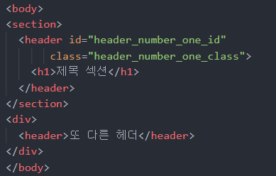 예를 들면 섹션 그리고 헤더를 만들어보자.